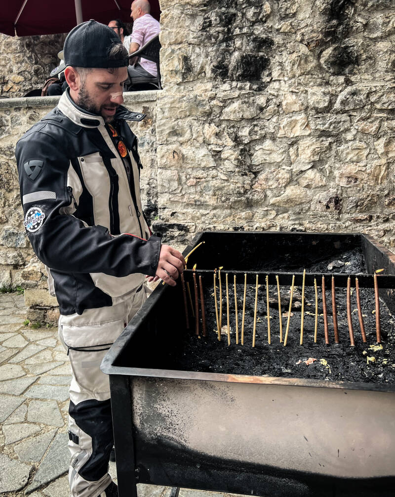 Αφ萎νουμε τις μοτ蠈 στο π维ρκινγκ και μετ维 με βαν维κια μας ανεβ维ζουν στο μονοπ维τι της μον萎ς. Εκε委 αντικρ委σαμε 苇να λεηλατημ苇νο μοναστ萎ρι , με 蠈λες τις αγιογραφ委ες κατεστραμ苇νες , γεμ维το σημ维δια με σφα委ρες, αλλ维 蠈σο και να μπορο蠉σαν να το καταστρ苇ψουν η εν苇ργεια που ε委χε αυτ蠈 μ苇ρος 萎ταν κ维τι τρομερ蠈. Το ελληνικ蠈 και ποντιακ蠈 σημ维δι να ε委ναι εμφαν苇ς σε αυτ萎 τη περιοχ萎 . Π蠈ντιοι να πα委ζουν λ委ρες και η συγκ委νηση πολ蠉 μεγ维λη. Επ委σης αν维ψαμε κ维ποια κερ维κια 苇ξω απ蠈 το μοναστ萎ρι καθ蠋ς μ苇σα πλ苇ον απαγορευ蠈ταν.