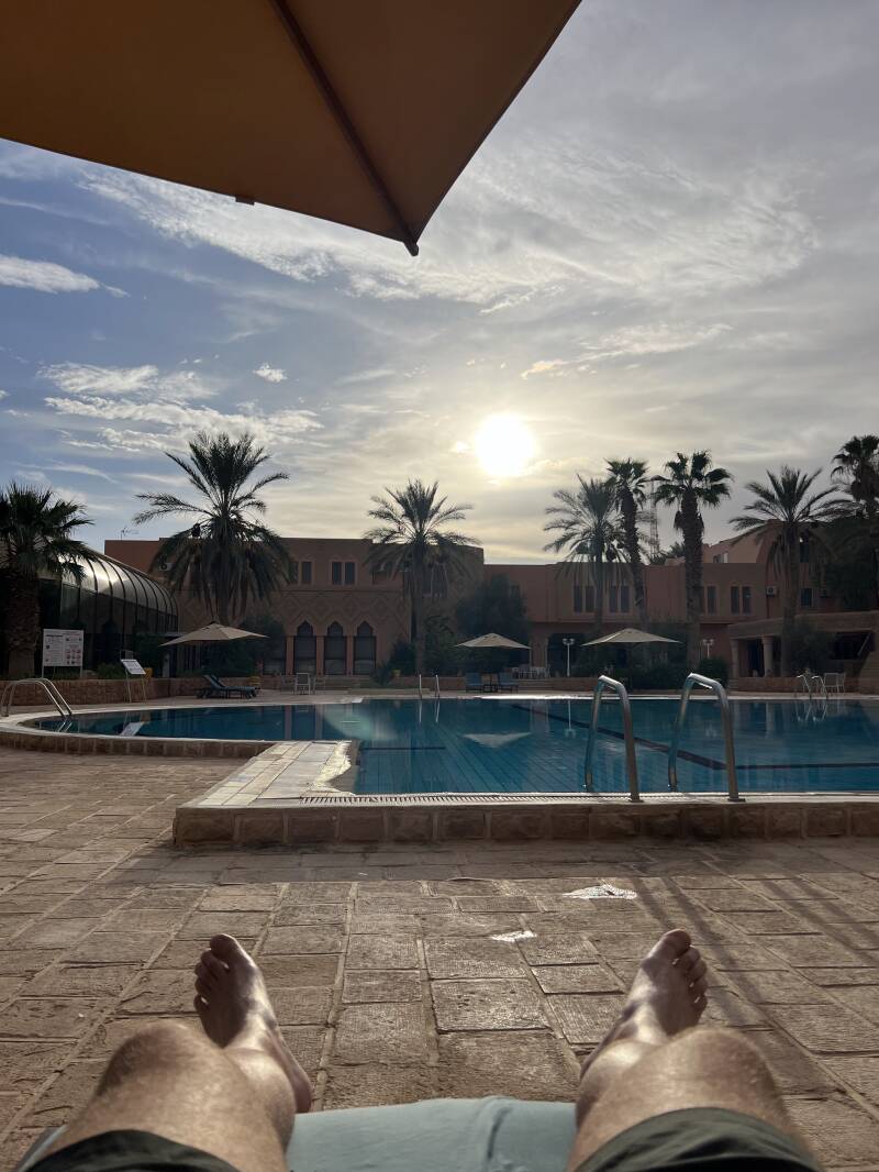 Μετα απ蠈 μια κουραστικ萎 οδ萎γηση μ苇σα στην 苇ρημο , επιτ苇λους π委σω στο ξενοδοχε委ο για ανασυγκρ蠈τηση και χαλ维ρωση και τι καλ蠉τερο απ蠈 苇να δροσερ蠈 μπ维νιο στην πισ委να